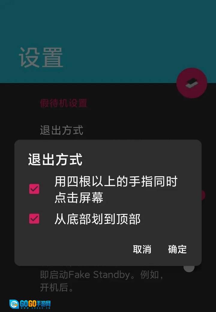 3、当然,你在开启后,可以在设置里选择退出黑色画布的操作,默认两种,四指同时点击屏幕和从下向上滑动屏幕。