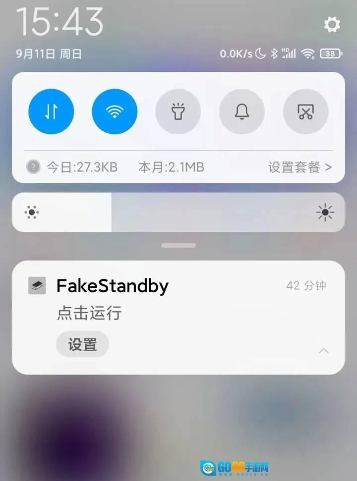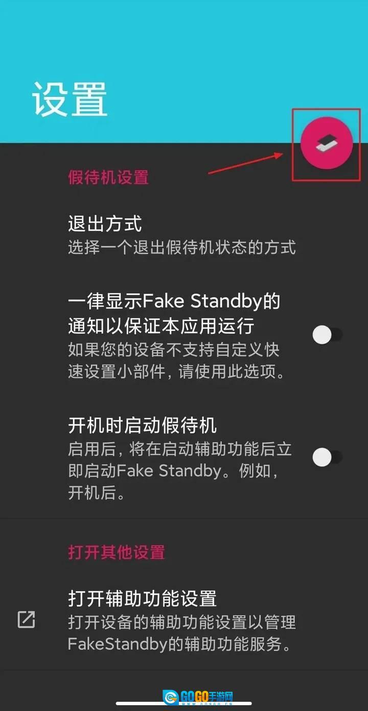 4、如果你想在其他App运行时开启FakeStandby,可以开启服务快捷方式,或着直接在通知栏里开启。