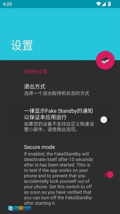 机制:FakeStandby推出了**“安全模式”(SafetyMode)**功能,该功能旨在避免用户在使用应用过程中,因误操作导致自己被锁在手机系统之外,无法顺利返回正常桌面。