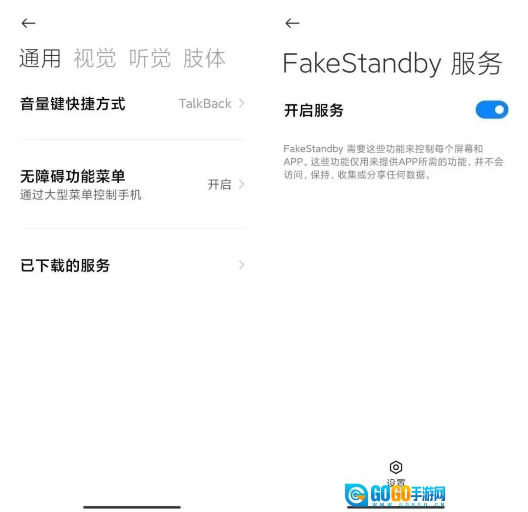 机制:FakeStandby这类应用要实现“熄屏保持前台”的功能,必须依赖**Android的“辅助功能服务”(AccessibilityService)**来模拟操作或阻止屏幕关闭。