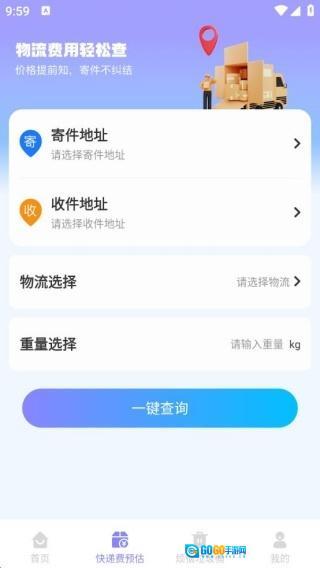 3、快递费预估可轻松查询,只需输入寄件地址、收件地址等相关信息,就能查看具体费用。