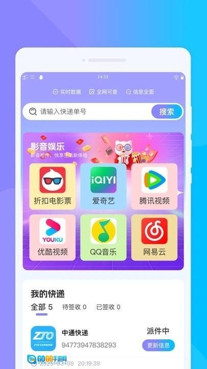 4、提供快递单号搜索功能,支持查询快递实时状态,信息覆盖全面、支持全网查询,数据实时更新。