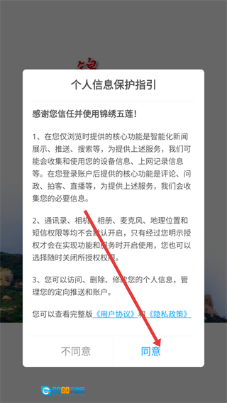 在个人信息保护指引弹窗里,仔细阅读《用户协议》与《隐私政策》的内容后,点击【同意】按钮,就能进入软件界面。