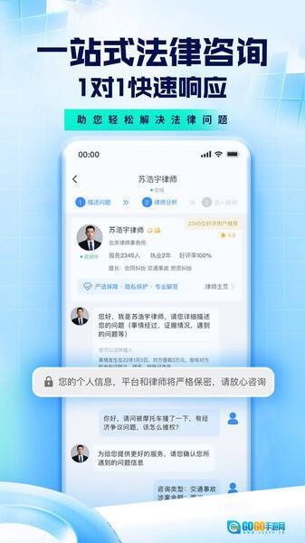 3、用户能够依据自身的需求和使用习惯,挑选最便捷的方式与律师进行沟通,不管是白天还是夜晚,律师团队都可实时在线。