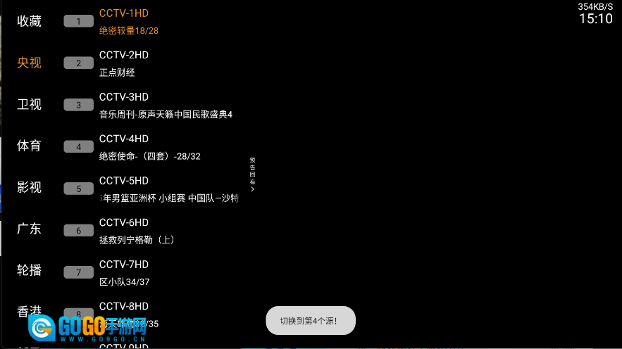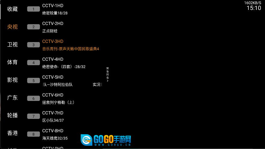 3、点击喜欢的频道就可以直接观看电视直播了