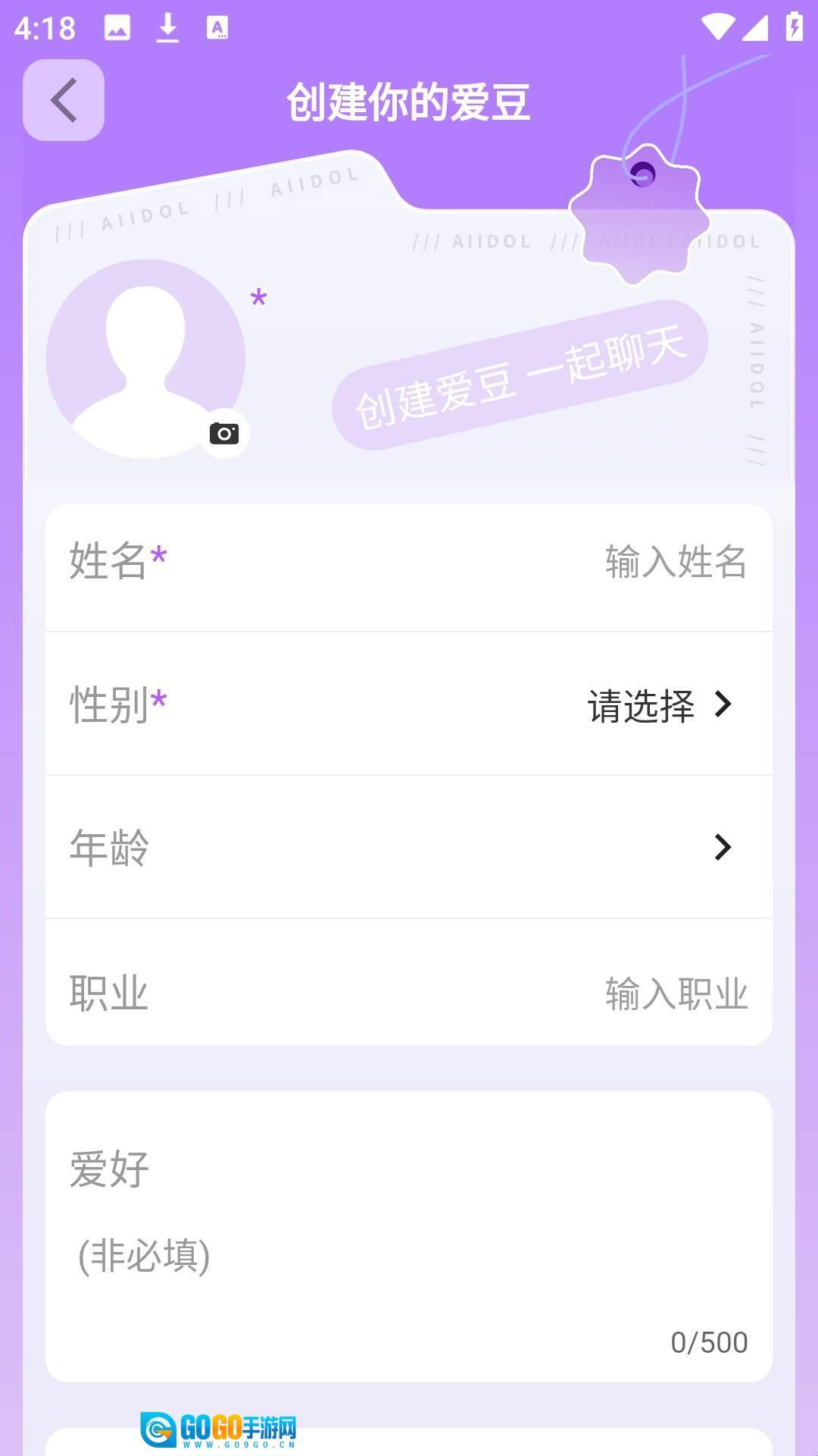 根据自己的眼光和爱好,可自行创建喜欢的爱豆进行互动;
