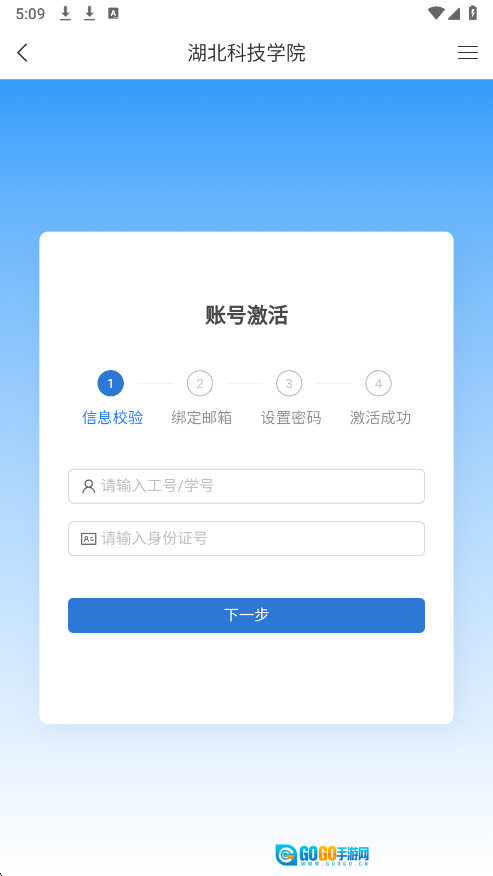 3、点击“激活账号”,输入工号/学号与身份证号进行校验,随后绑定邮箱并设置密码。