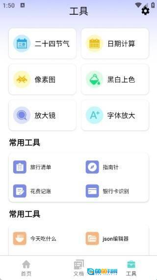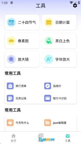 4、在工具页面中有二十四节气、日期计算、像素图、黑白上色、放大镜、字体放大,还有各种常用工具。