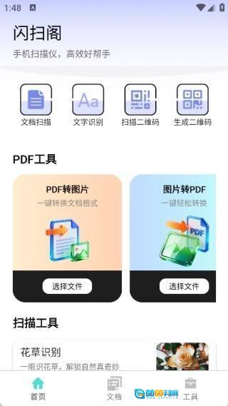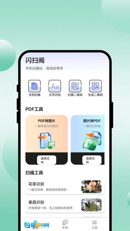 1、在首页中提供文档扫描、文字识别、扫描二维码、PDF工具以及扫描工具的功能;