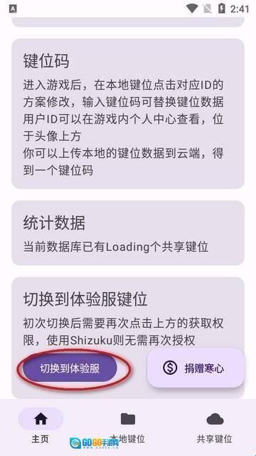 3、在进入游戏后,在本地键位点击对应ID的方案修改,输入键位码可替换键位数据用户ID可以在游戏内个人中心查看,位于头像上方,你可以上传本地的键位数据到云端,得到一个键位码。