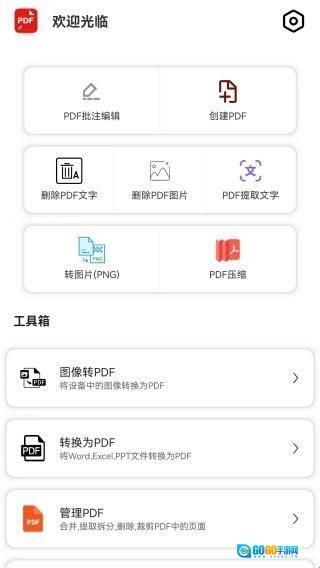 1、打开PDF汐颜阅读器App,进入平台主页后,可使用PDF批注编辑、创建PDF、PDF工具箱等功能。