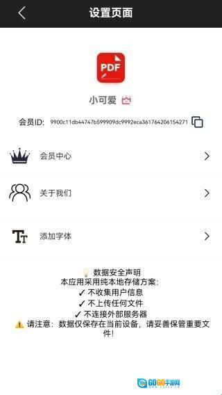 4、进入到设置界面,既可以去查看会员ID,还可以去进行添加字体的操作