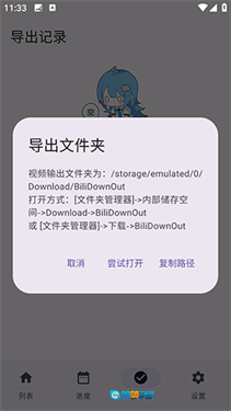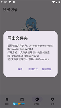 视频的输出文件夹路径是:/storage/emulated/0/Download/BiliDownOut
