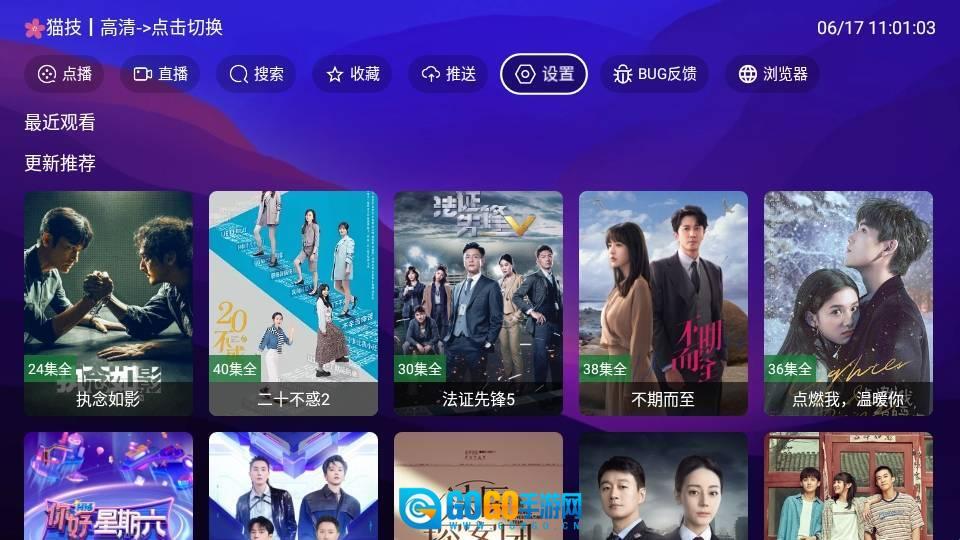 3、设置完成后,首页就会显示可观看的剧集;若想切换播放源,返回设置界面点击小房子图标即可。