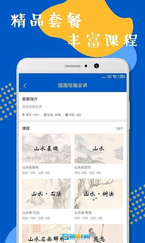 国画绘画全讲是一个面向国风画作爱好者的在线学习平台,平台详细讲解了山水画、花鸟画、人物画等各类国风画作的绘制方法,帮助你轻松画出优美的国风画作;平台的教学视频从入门开始,按照由简到难的顺序循序渐进,让用户能更轻松地掌握每个步骤的要领,让学习国风画变得更简单;在这里只需几十元就能掌握国风画的精髓,相比线下几百上千元的学习费用更省钱,有需要的朋友可以立即使用!