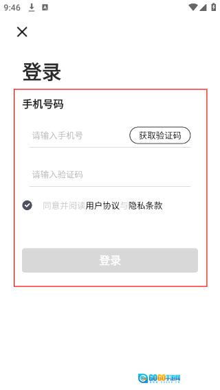 3、登录界面需先填写【手机号码】,点击【获取验证码】并输入收到的验证码,勾选相关协议后,即可完成登录操作。