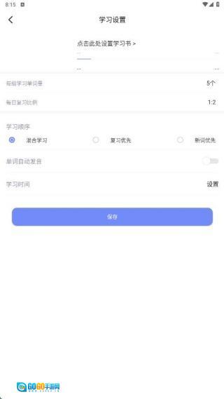 2、可以自定义学习的书籍内容,同时还能设定学习顺序、每日背诵单词数量等相关参数。