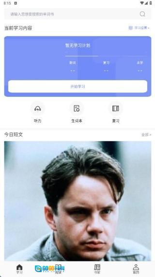 4、学习设置完成后,首页便会展示每日的学习计划,按时启动,就能轻松背诵单词。