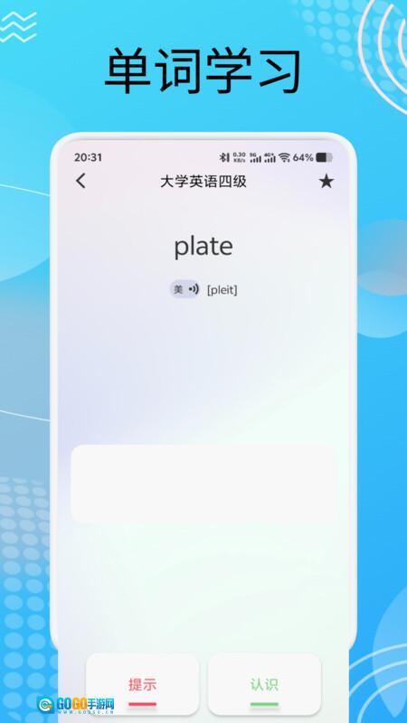 2、智能推荐系统会根据你的学习进度,精准推送最适配当前水平的单词,帮你摆脱盲目学习的状态,让每一步进步都清晰可感。