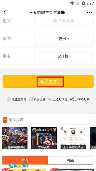4、在其下界面我们可以看到有着许多关于王者荣耀的趣味生成器,选择其中一个点击开始即可,在此小编以主页生成器为例;