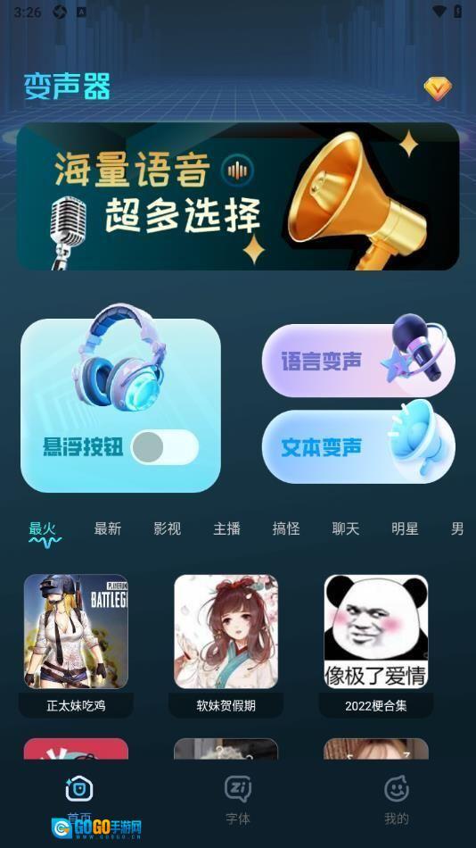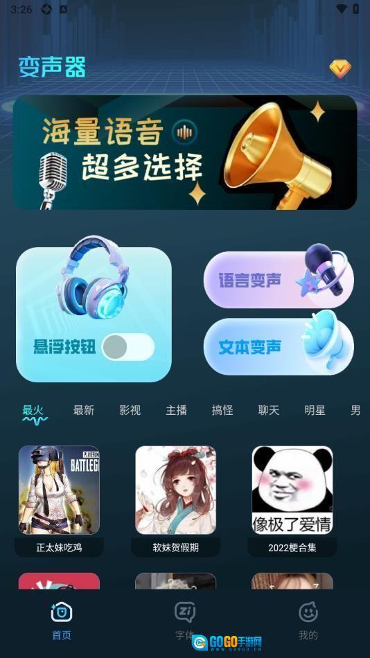 1、这里有大量高度还原的变声音效,用户只要简单点击一下,就能根据不同的聊天场景和交流对象,瞬间切换成各种声音类型的角色。