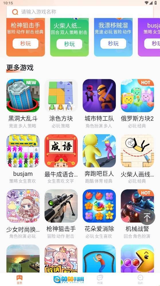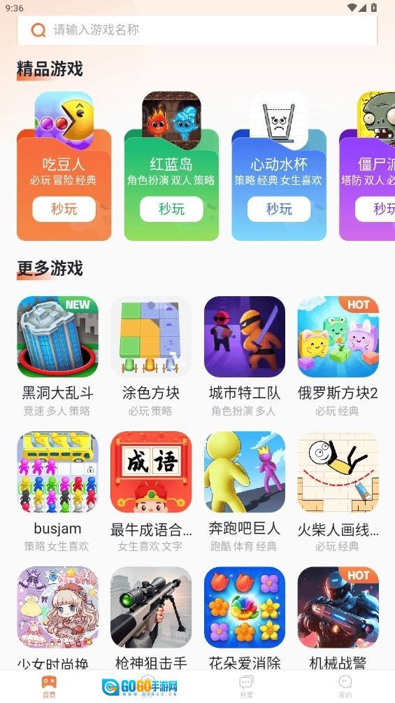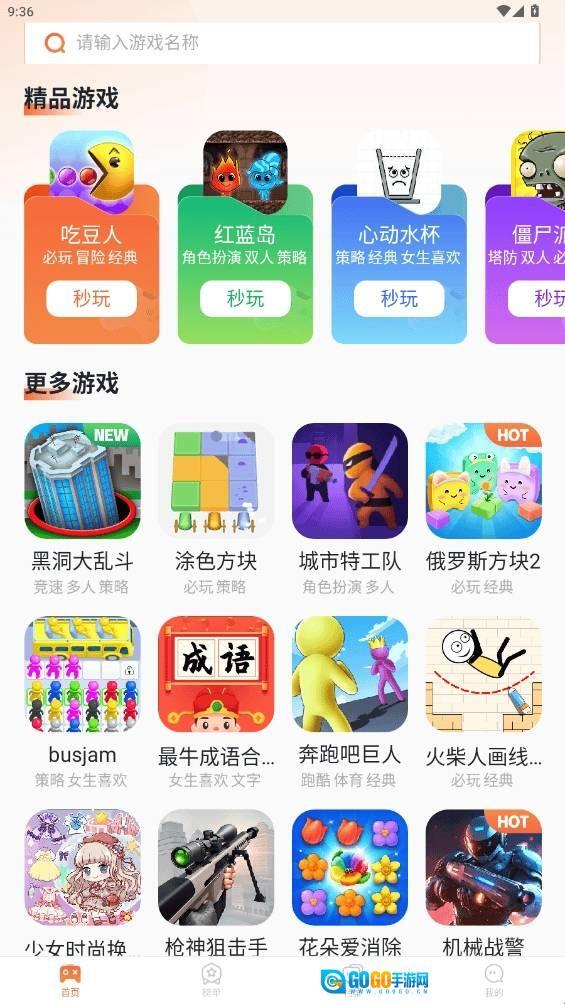 2、在首页或在排行榜中打开你需要玩的小游戏。