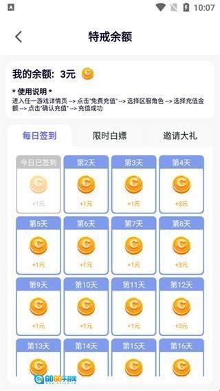 7、点击白嫖,用户每天登陆签到还能白嫖真实充值,用户可以对游戏进行充值;