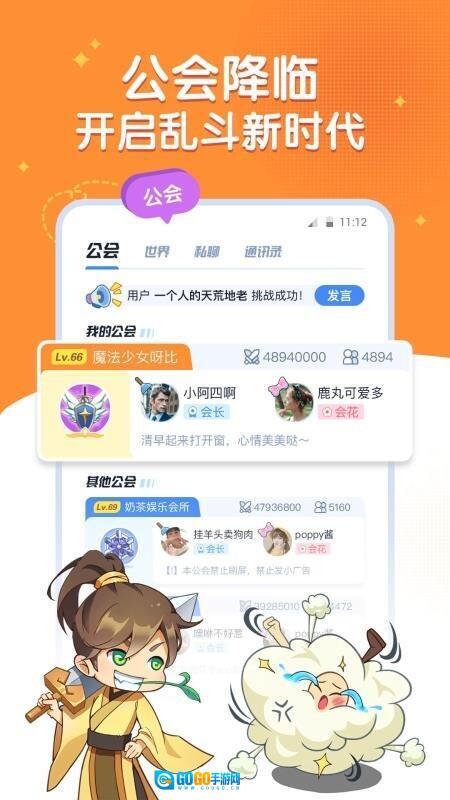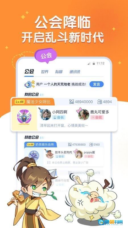 6、进入公会中,迅速就可以参与到聊天中
