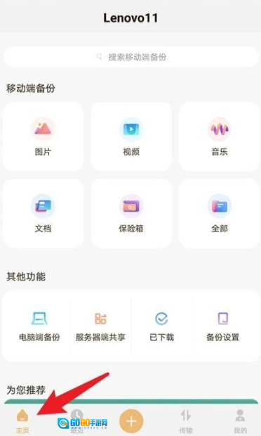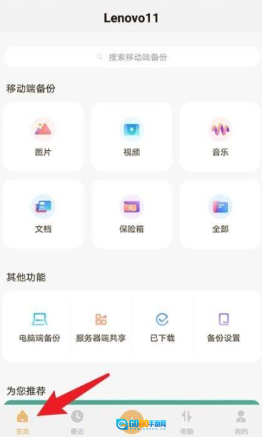 2、进入首页后,点击底部的“首页”标签,即可查看移动端备份的分类内容。