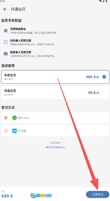 3、挑选会员套餐后点击“立即购买”,完成支付即可开通相关功能。