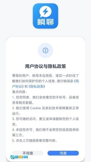 1、安装后,查看用户协议和隐私政策,点击同意。