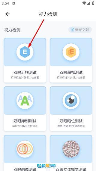 进入【视力检测】页面后,能看到【双眼近视测试】等检测项目选项,每个项目都对应着不同的视力检查方式,你可以根据自身需求选择相应项目,随后就能启动检测流程了。