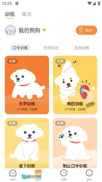 *独家响片训练模块,专注于增强宠物对狗狗名字的听从度,加深宠物的感情。