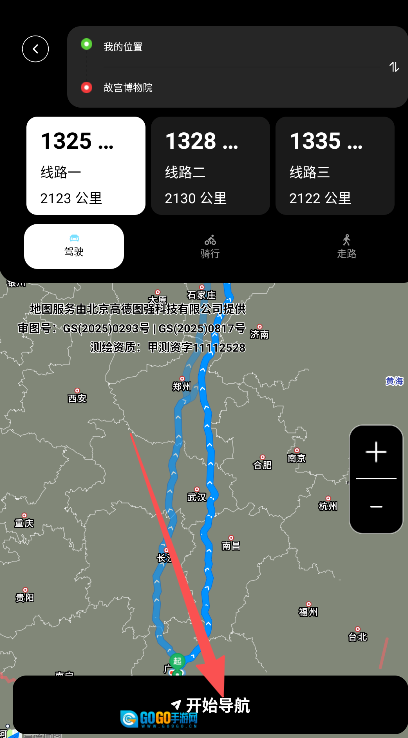 在选定目标路线后,点击“开始导航”按钮,即可进入实时导航界面。
