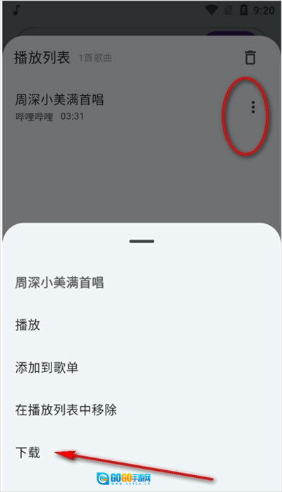 2、点开歌曲后有个的按钮。
