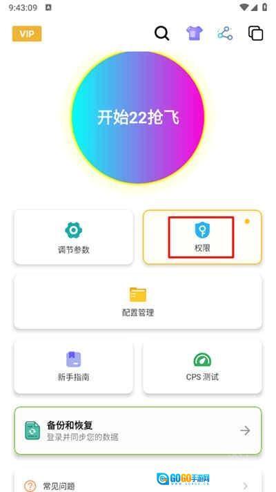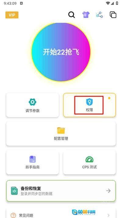 在主页点击"权限"进入,开启无障碍使用权限。