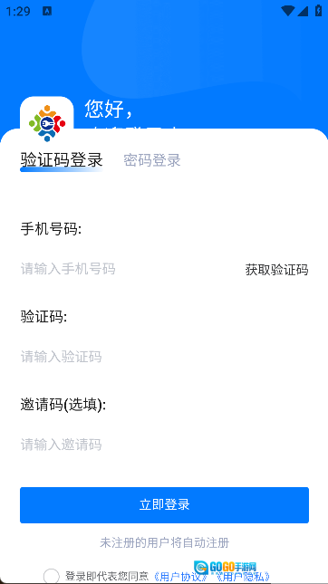 2. 输入手机号和验证码,即可快速登录,开始使用。