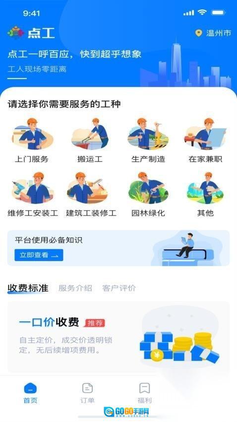点工是一个便捷的上门服务平台,用户能随时预约家政清洁、家电维修、搬运、建筑、装修、维修、安装、园林绿化等各类专业工人上门服务。它致力于满足用户生活里的多样化需求,让忙碌的生活更轻松简单。另外,平台还有优惠福利,能帮用户节省开支,推荐有需要的用户使用。