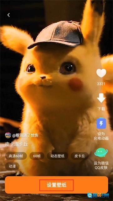 2、选择好后进入到壁纸详情页面上,你可以将这个壁纸设置成充电动画,也可以设置为微信QQ皮肤,点击下方的“设置壁纸”。