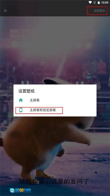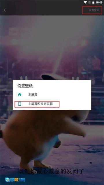 3、进入到设置界面时,点击右上角的“设置壁纸”按钮,页面上弹出了两个选项:主屏幕、主屏幕和锁定屏幕,点击下方的选项。