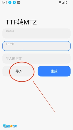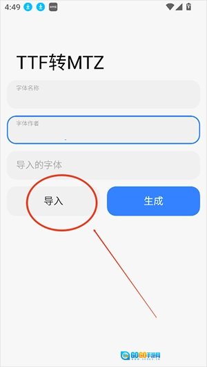 2、输入名称,字体,点击导入即可。