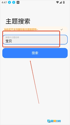 2、输入主题名称,点击搜索。