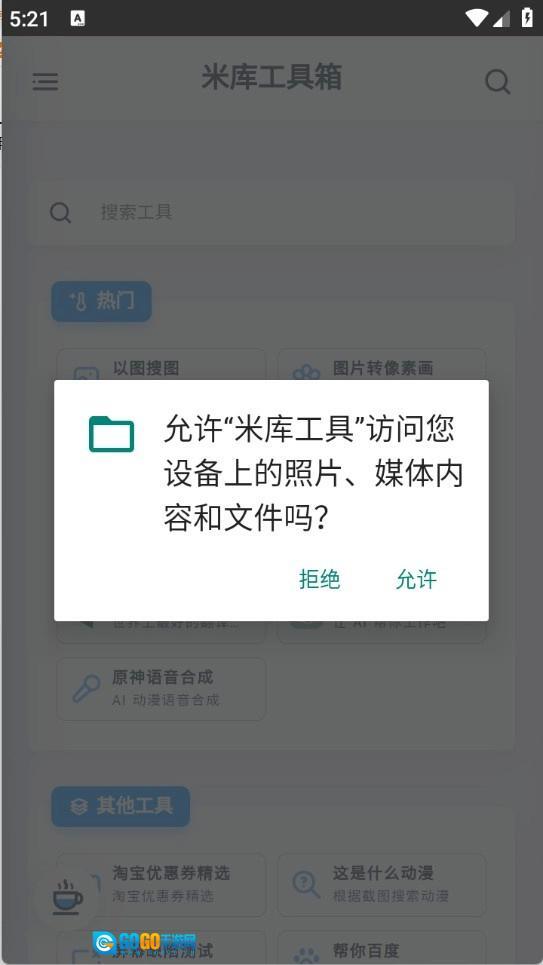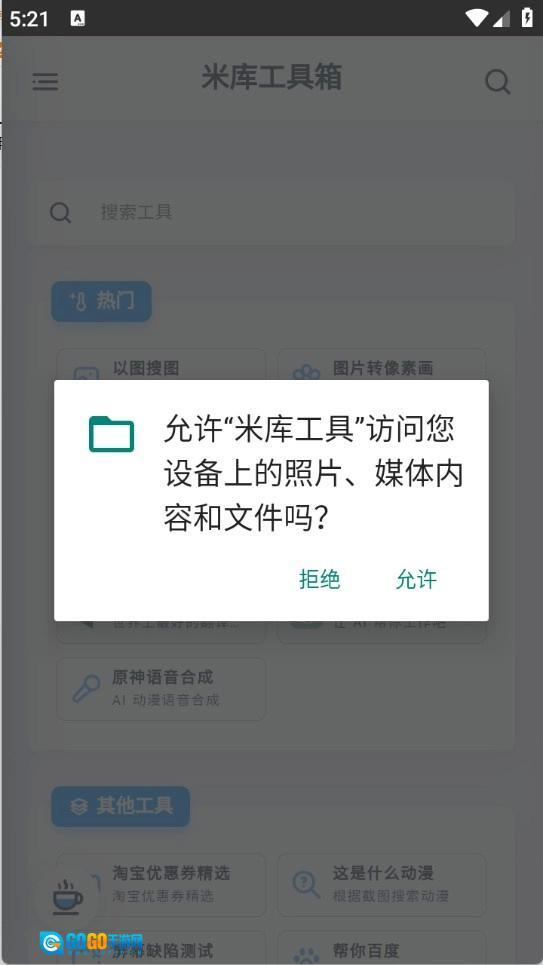 1、打开米库工具箱,并授予必要权限,确保功能正常运行。
