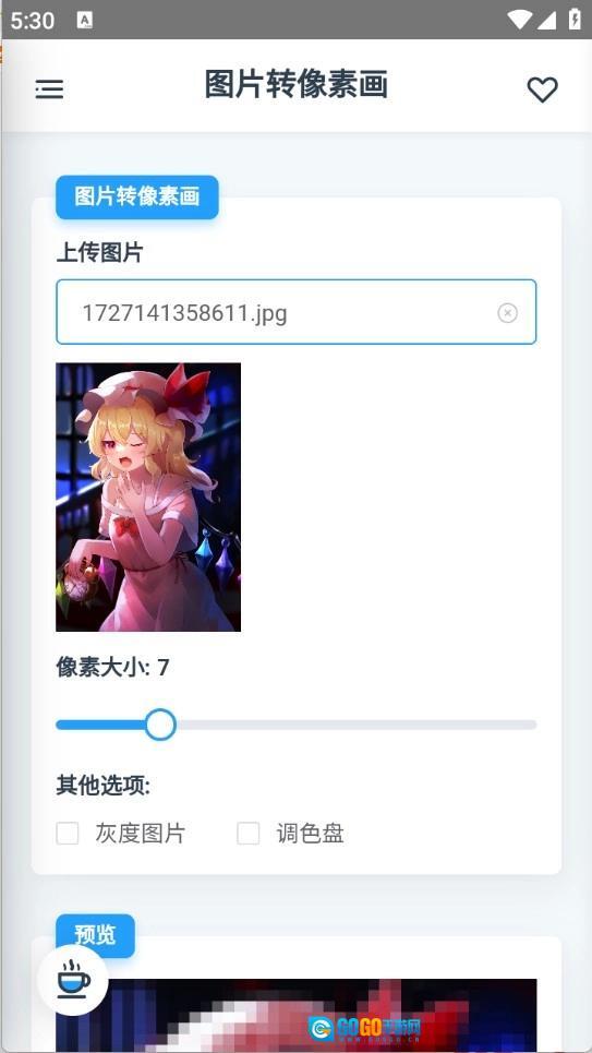 4、上传需要处理的图片,系统自动转换,稍等片刻即可获得像素风效果。