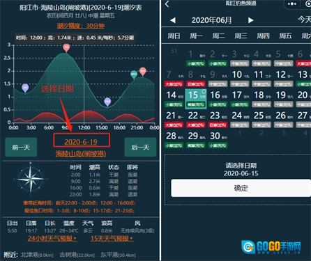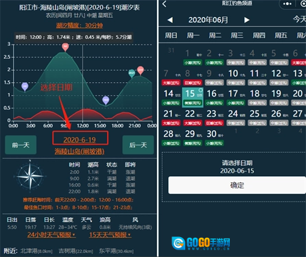 点击日期即可打开潮汐日历,大潮小潮、死讯活汛都能一目了然。
