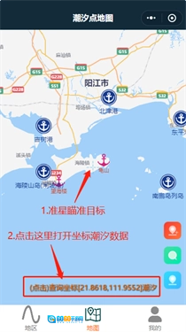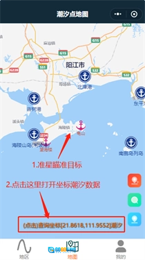 4.港口潮汐,通过地图的形式查看潮汐情况,可以更好的查看预测数据;
