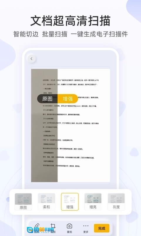 专业图像处理技术,支持自动识别文档边界,扫描文档自动修复,多种滤镜加持。