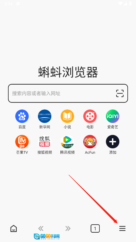 1、在本站安装好蝌蚪浏览器之后,打开。