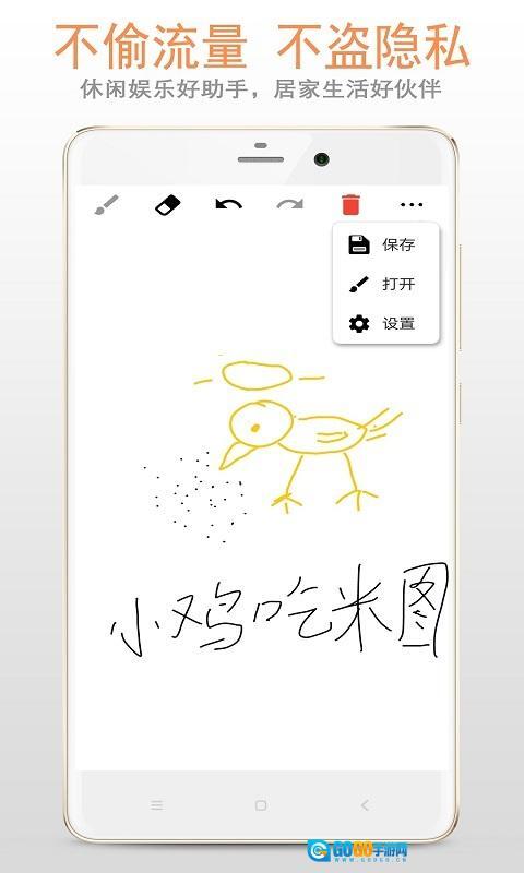 软件拥有丰富实用的功能,能够满足用户多样化的需求。用户可以自由调整画笔的粗细和颜色,打造出独具个性的绘画风格。橡皮擦的粗细同样支持调节,便于用户对作品进行修改和优化。软件提供操作的前进与回退功能,让用户能轻松撤回或重做之前的步骤,大幅增强了创作的灵活性。作品可保存为PNG格式到SD卡,方便用户随时查看和分享。
