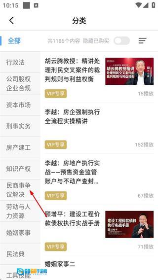 2、在分类页面中,选择“民商事争议解决”这一分类,随后进入该分类对应的页面。